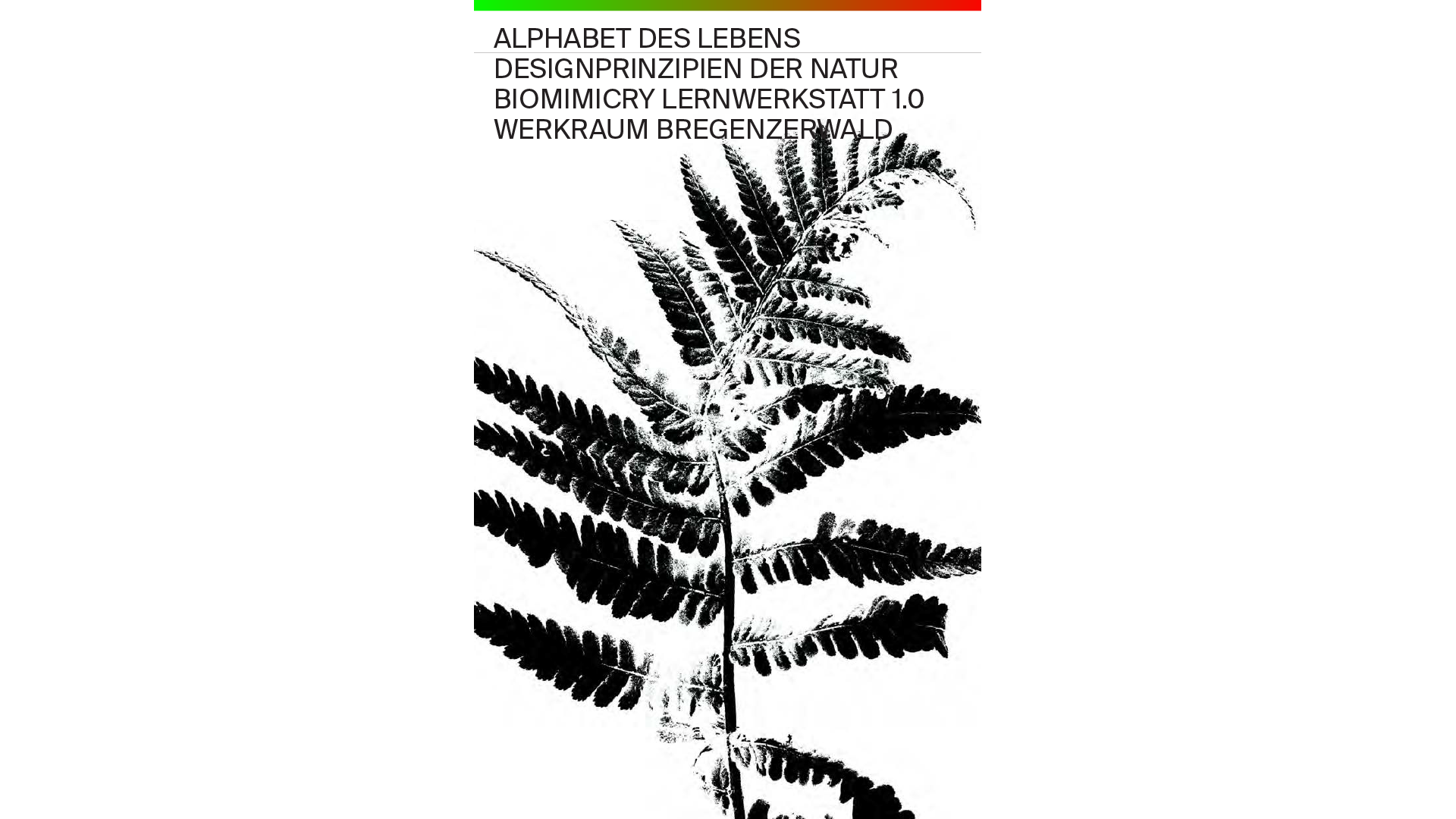 Alphabet of Life — Biomimicry Learning Lab Alphabet des Lebens — Biomimicry Lernworkshop 24—29 July 2017, Andelsbuch and immediate environment, Bregenzerwald