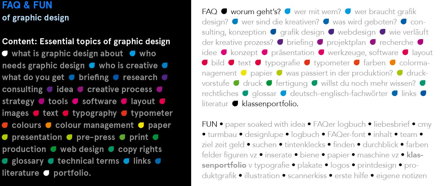 Graphic Design FAQer (German: Fächer) On the back pages the young designers present free works and their portfolios.