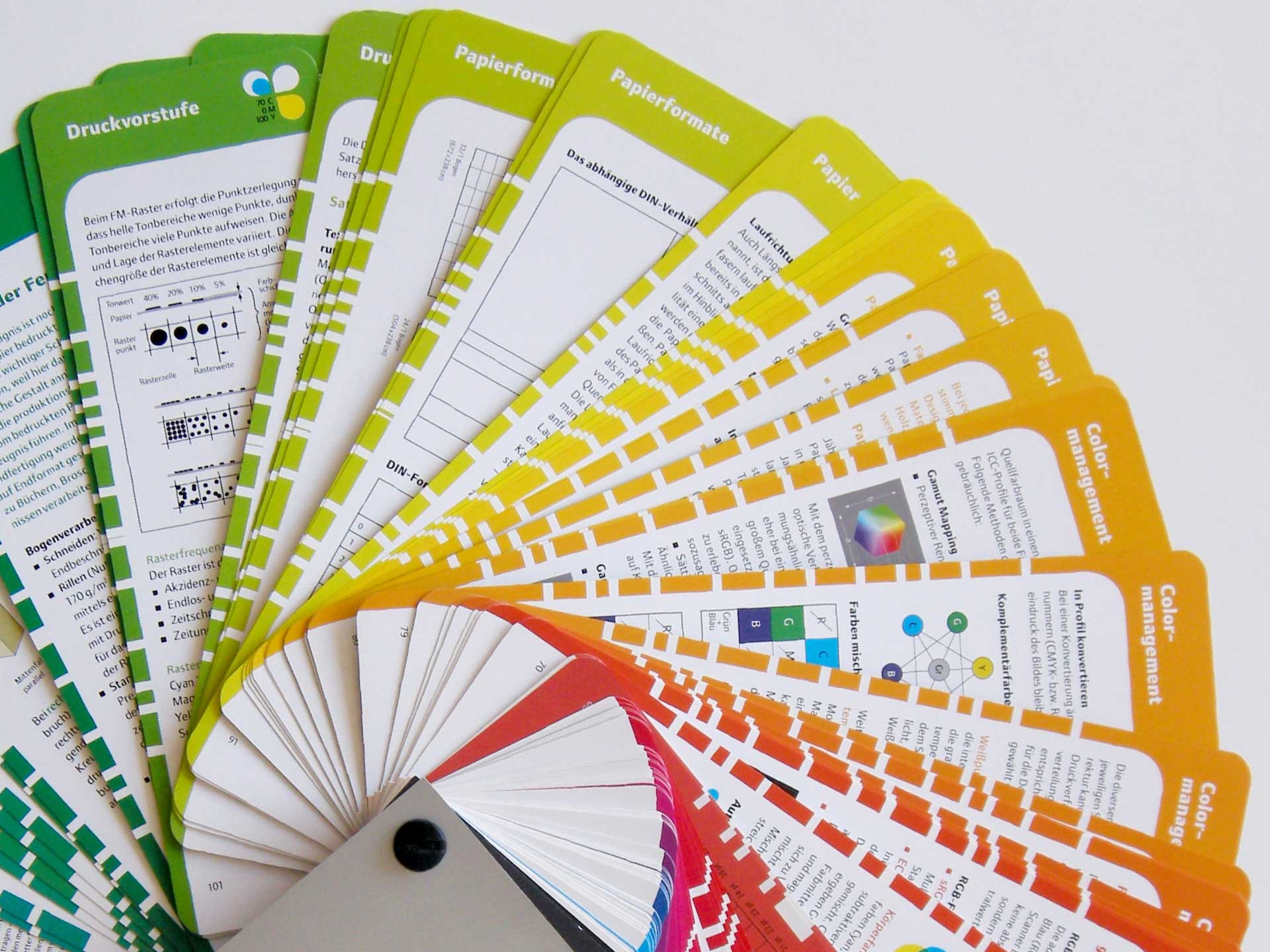 CMYK Flower A colour guide and the so-called CMYK flower frames each page with a different colour (including printing instructions for each colour).