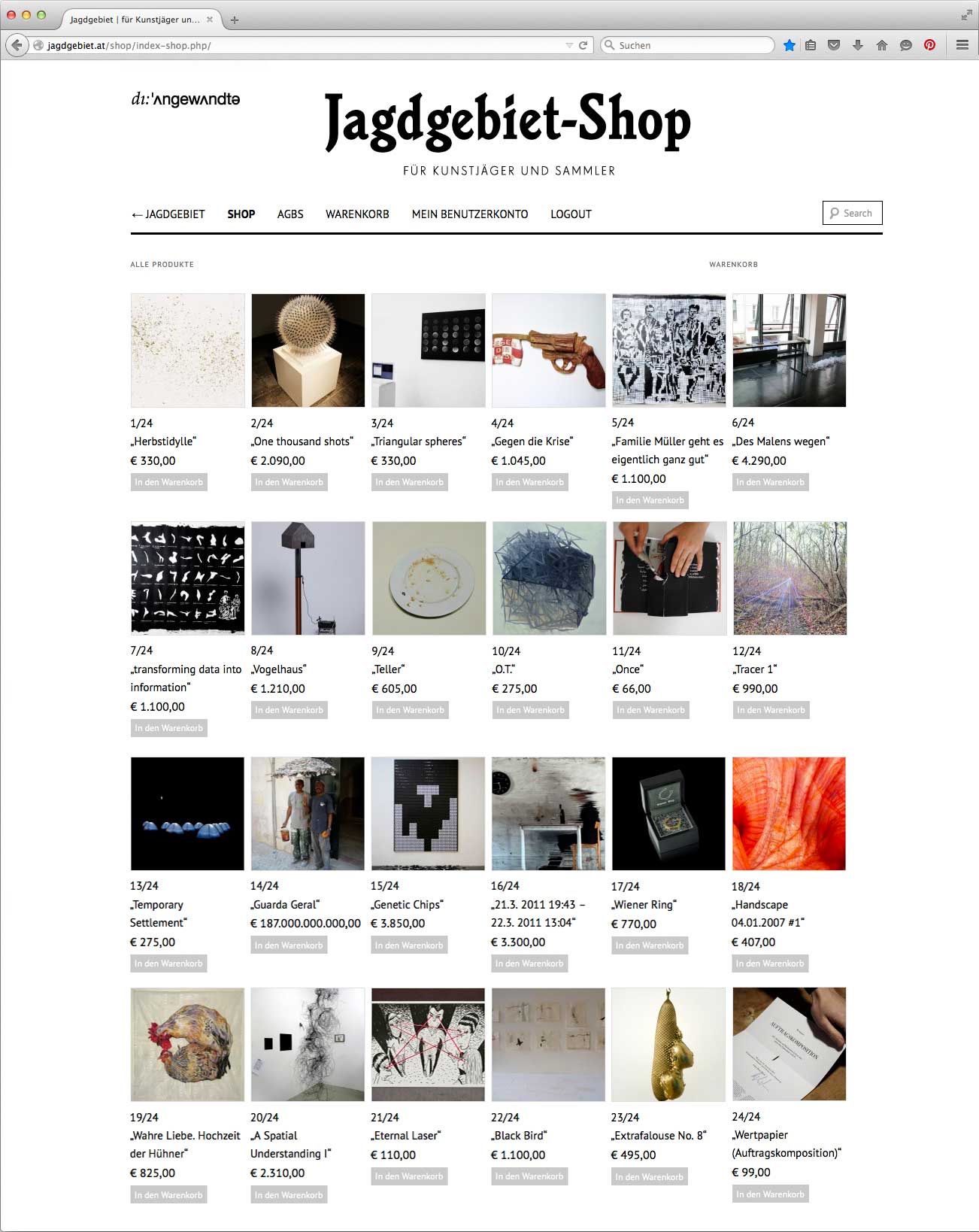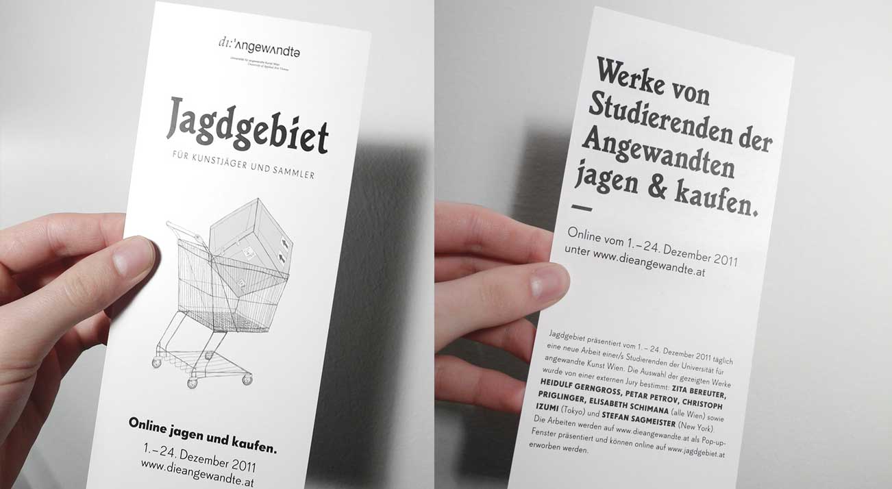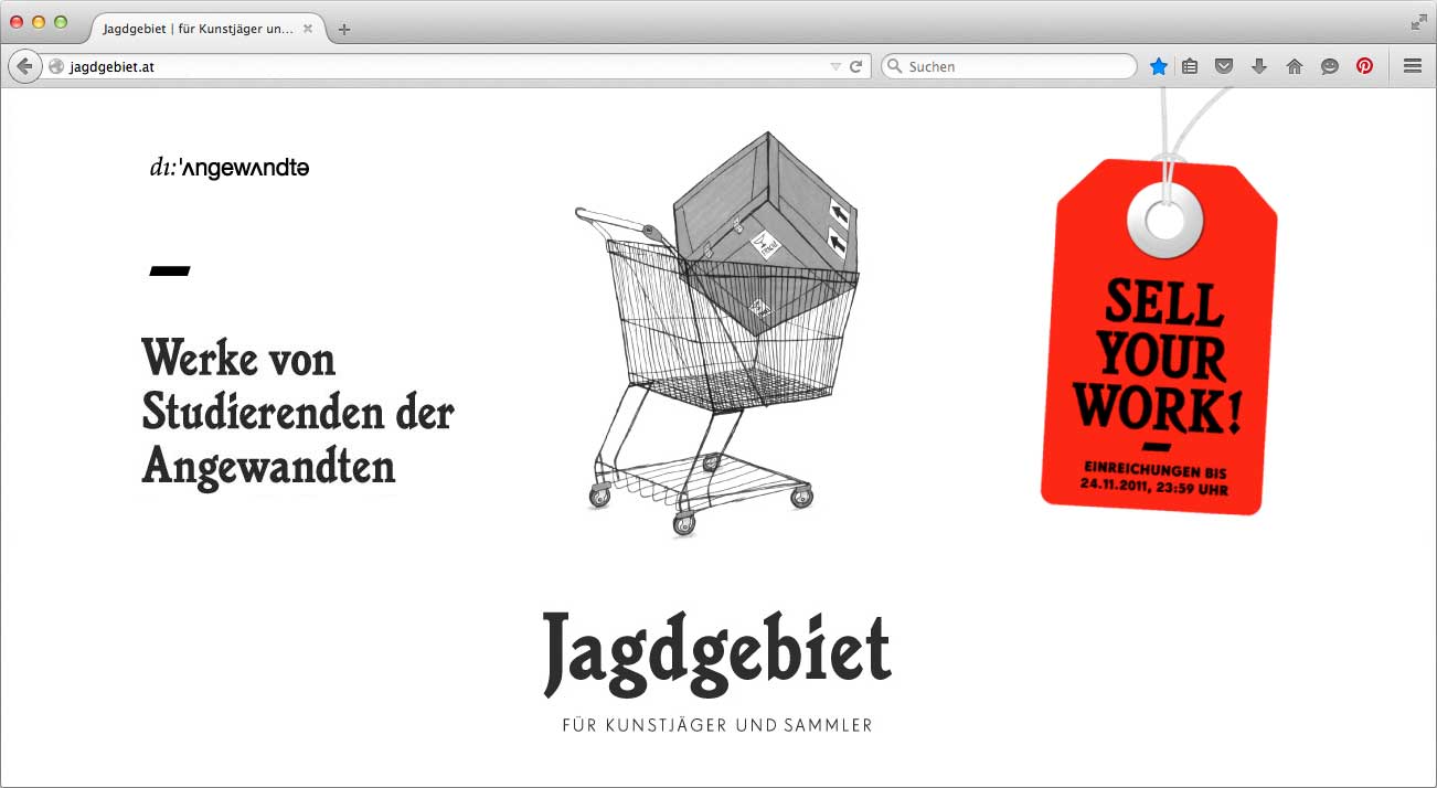 An ›Action Design Team‹ consisting of graphic design students initiated, designed and managed an online shop for art and design from students of the University of Applied Arts Vienna. www.jagdgebiet.at ⤑